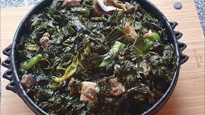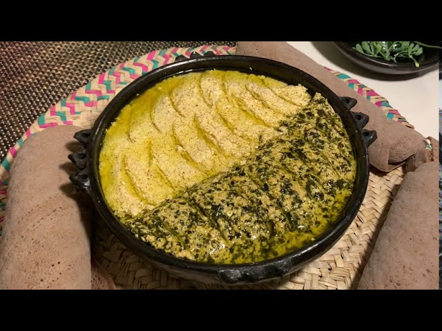 Ayib (Ethiopian cottage cheese) served over Gomen (collard greens)