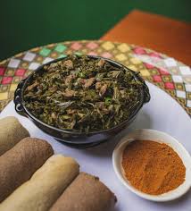 Spiced ground beef stew cooked with Ethiopian herbs and berbere. Served with injera.